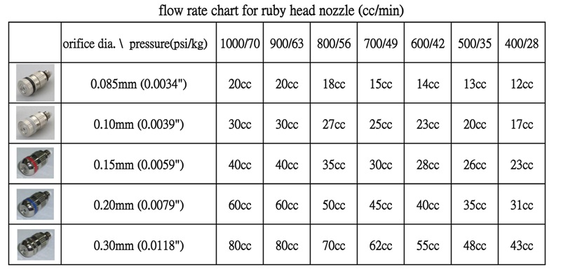 Orifice diameter : 0.085, 0.10, 0.15, 0.20, 0.30mm